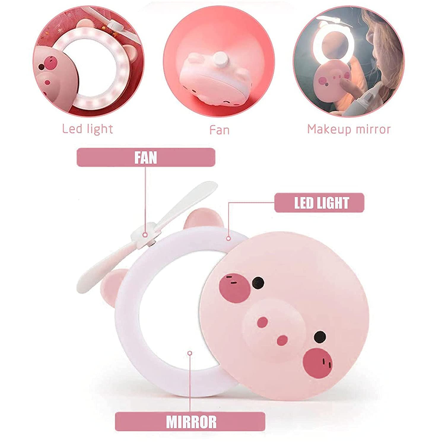 - SILICONE FAN: Ignitate Portable Mirror comes with a soft silicone fan. You can use the fan function to cool your face in summers, dry after applying eyeliner, set your make-up.