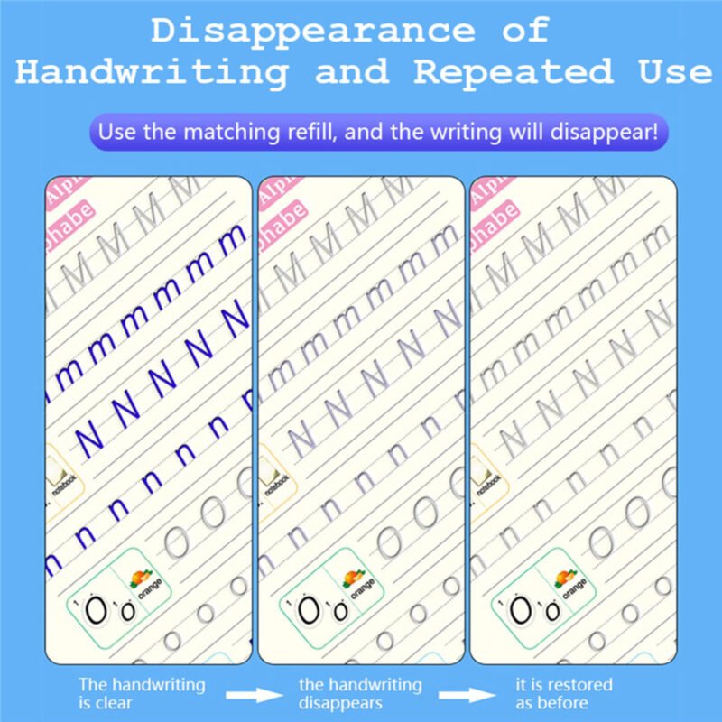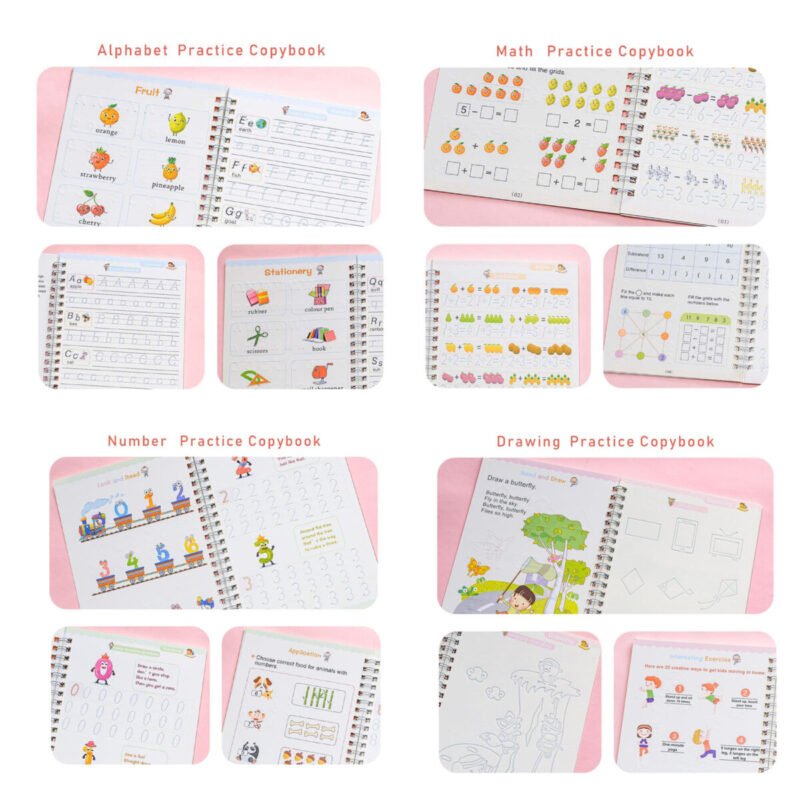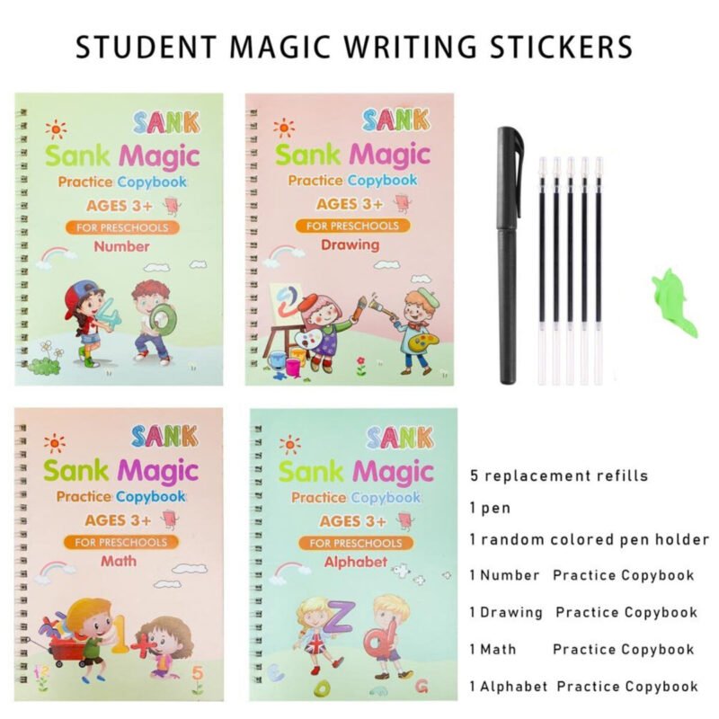Magic Practice Copybook, Number Tracing Book For Preschoolers With Pen, Magic Calligraphy Copybook Set Practical Reusable Writing Tool Simple Hand Lettering (4 BOOK + 5 REFILL+ 1 Pen +1Grip)