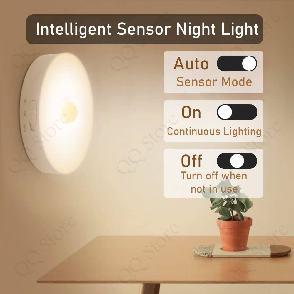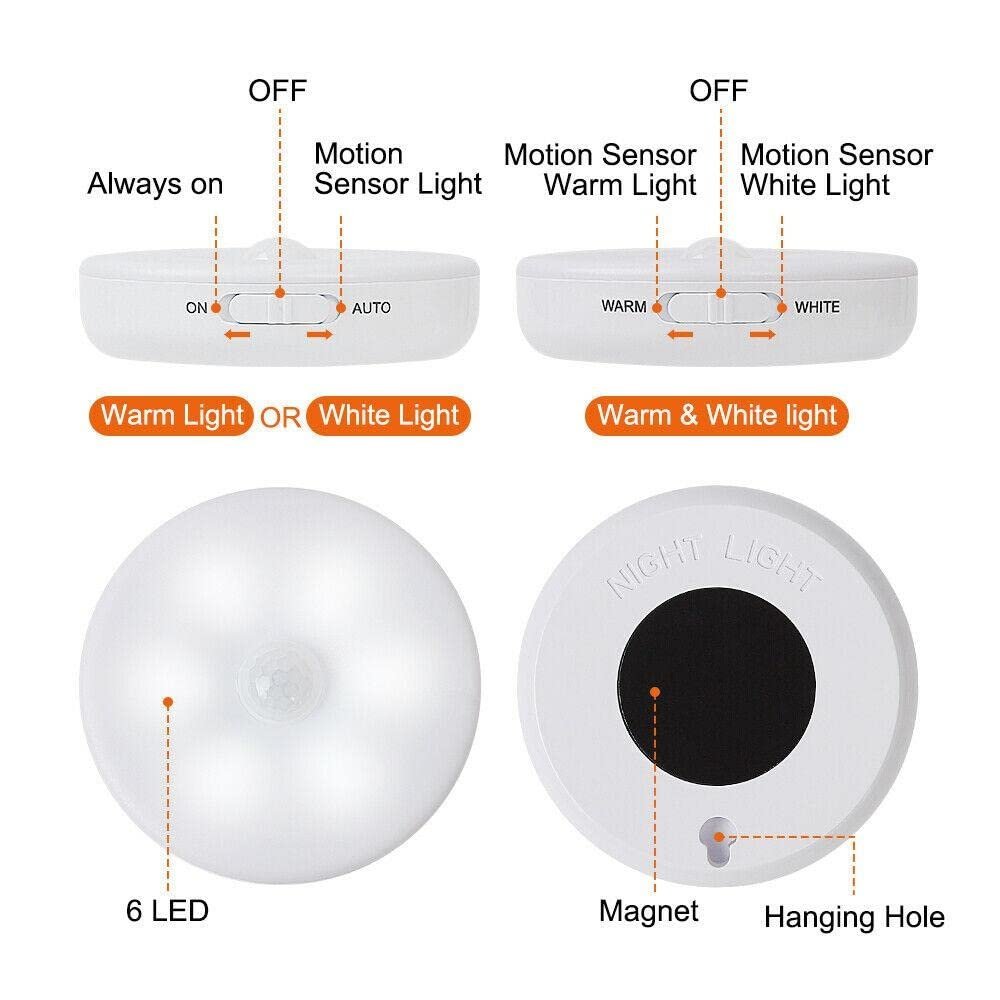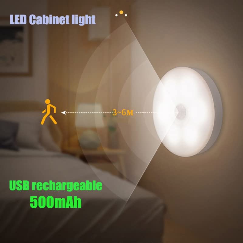 USB CHARGING + LONG LIFE: Different with traditional battery night light, our sensor lights have built-in 700mAh lithium rechargeable battery. 2 hours required for fully charged, and then working more than months in auto mode, energy saving. ENERGY-EFFICIENT: Decorcrafts motion sensor lights, automatically turn on when motion is detected within a 7-10 ft. range, automatically powers off after 15-20 seconds of inactivity, this sensor light will lighting your path as you cross and shutting off soon after. Up to 60 lumens output, 6 bright LED beads inside, saving energy. IMPORTATNT NOTE: Motion Sensor Light can only be turned on in darkness environment. It won’t turn on if enough light has been detected by the light sensor. EASY INSTALLATION: Simple to install, no hard-wiring. With double-sided adhesive pads and built-in magnet, you can stick the LED lights anywhere you like. Please do not install this light in high temperature place or somewhere with dust, otherwise, the adhesive strip will be affected, and then the light will slide easily. WIDELY USED: This rechargeable night light works great for bedroom, hallway, washroom, kitchen, wardrobe, corridor, stairs, dark closets, shelf, stairs or cabinets. Package includes : One USB Charching sensor Light