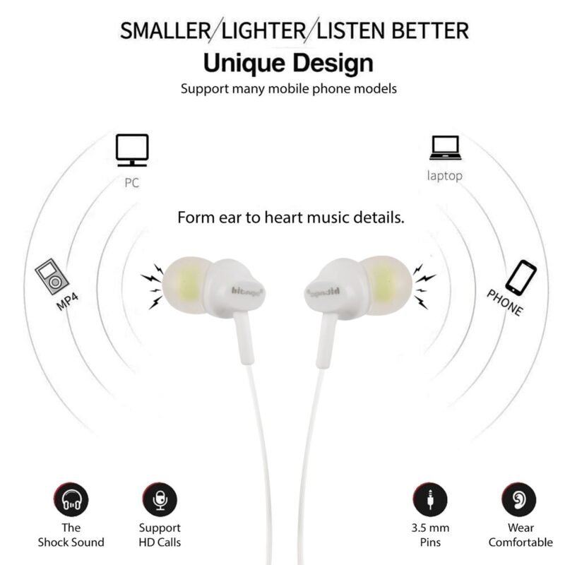 HITAGE HB-468 Multi colors Earphones Powerful 10mm drivers for sonic clarity, bass-driven stereo sound and good attenuation of ambient noise Innovative housing design enables for wearing comfort with Made to fit you and your lifestyle, providing a smooth grip for an extra secure and comfortable fit for your ears Crafted with care, the polished metal ensures its longevity, the tangle-free cable is lightweight and features user-friendly controls for easy functioning. Compatible with all devices having 3.5mm jack. Passive noise cancellation feature enables users to enjoy listening to music even in a chaotic and noisy environment; it also enables users to receive calls on-the-go.