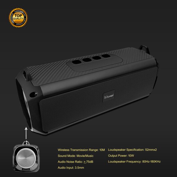 HITAGE BRAND BLUETOOTH SPEAKER BS- 414 Enjoy signature loud 5X5Watt sound without any distortion, sound engineered using Listen Technologies USA devices.Bluetooth speaker is the ultimate premium ABS build – for portability and ease of use. Due to the light and sleek design carry your speaker on the sweat Proof . Quick connect your devices with this portable speaker without any lag with Bluetooth 5.0 technology. 5-6 hours long more battery life with type C input, now listen to your music without worrying about power with the. Multiple inputs of Bluetooth, AUX & Micro SD to keep you connected YOUR way. Comes with a 1-Month warranty to Manufacturing Defects specialists.