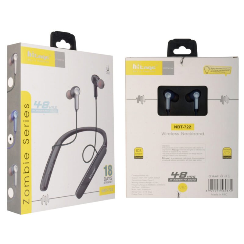 Hitage Zombie Series NBT-722, You can listen to music and attend calls for up to 48 hours Music AT Moderate Sound 96 Hours Talk Time, 400 hours of standby time due to its powerful 300 mAh lithium polymer battery. You can easily manage calls and control music with the help of its 3 button control panel. This comes with exceptional features such as being equipped with an advanced stereo system for immersive sound and deep bass, a lightweight and compact design, an inbuilt microphone for crystal clear calling sessions. Above all, it comes from Hitage, “hitage Providing best technology Mobile Accessories Products. Hitage products serve well and last longer. in a ocean of brands and products, Hitage is a pillor where values and customer satisfaction from the very root of its structure.