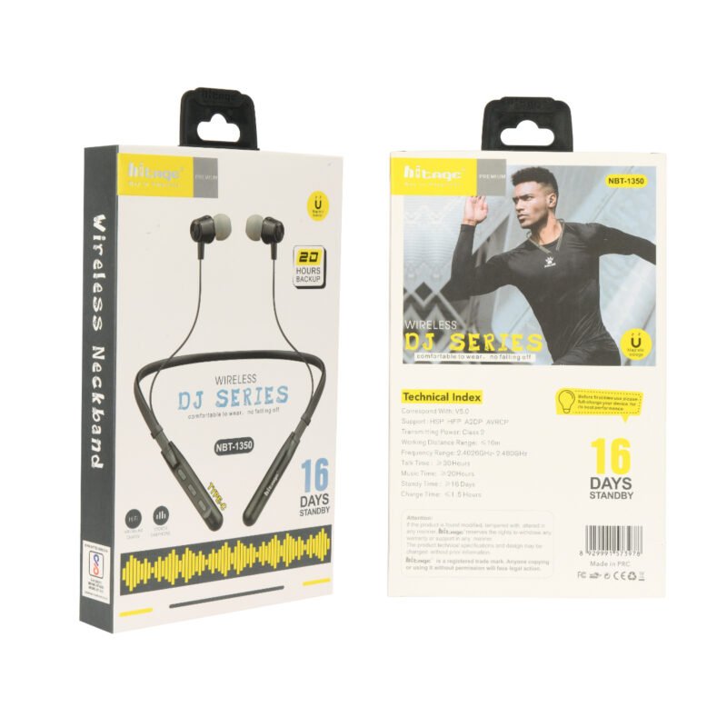 The Hitage DJ SERIES NBT-1350 Bluetooth Neckband is the perfect solution for music lovers on the go. With up to 20 hours of music play time and a 16 day standby time, you can enjoy your favorite tunes for longer. The ergonomically designed Neckband Headset