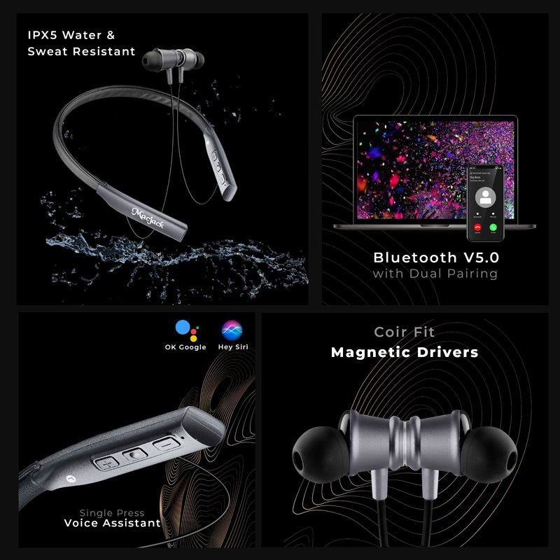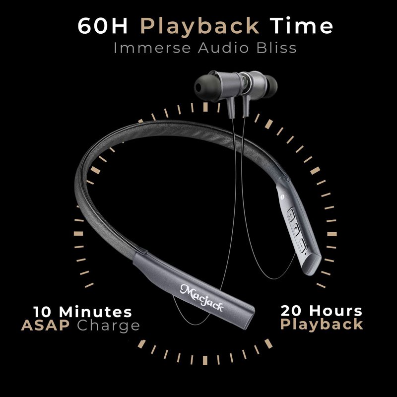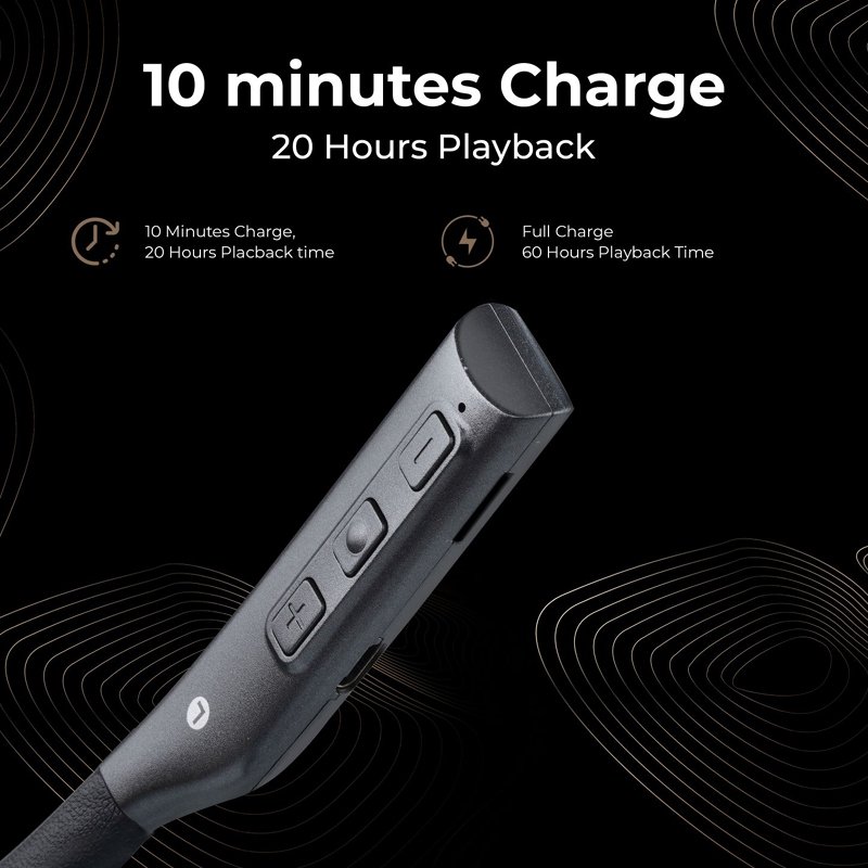 - The neckband offers a huge playback time of up to 60 hours in a go