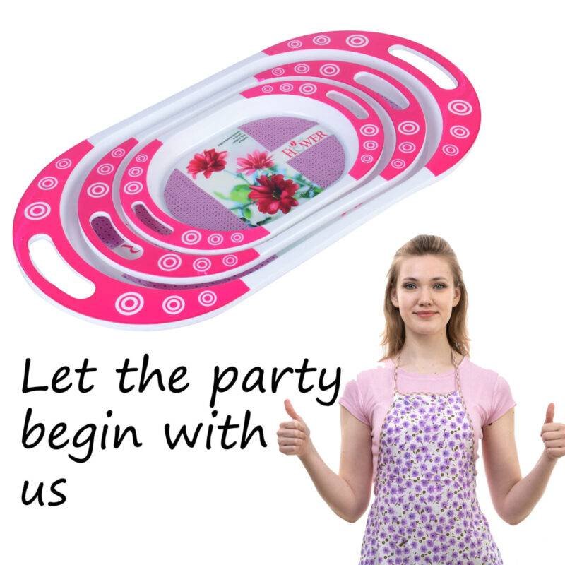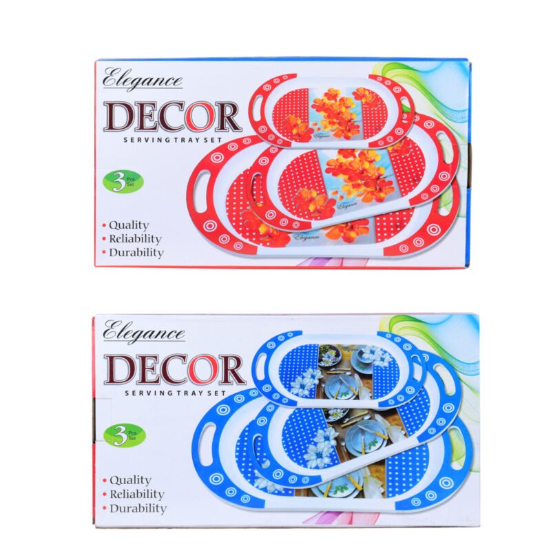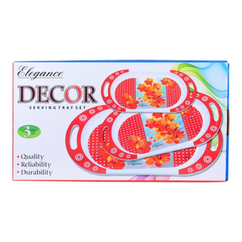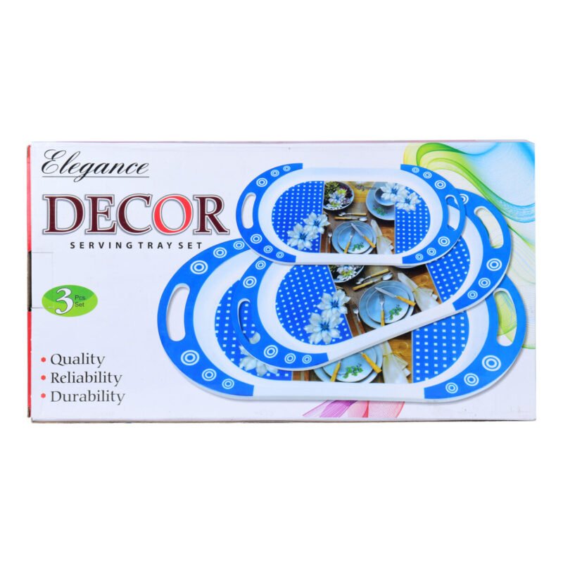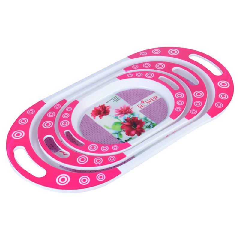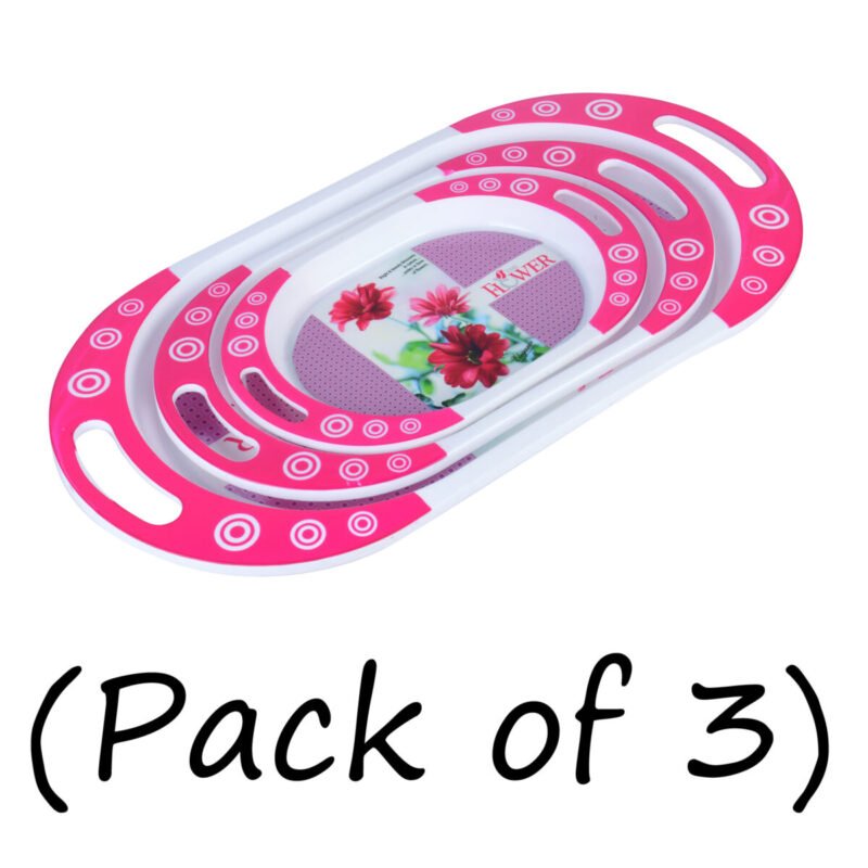Serving Tray Set with Rectangular Shape, Printed Design, Natural, Pack of 3 Tray Set – Large, Medium, Small