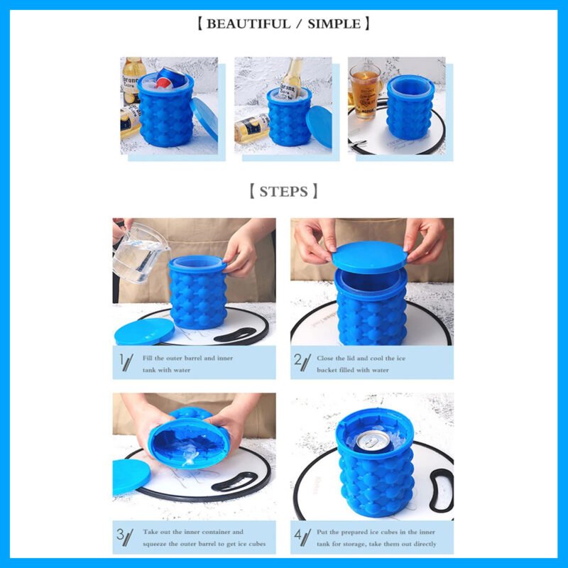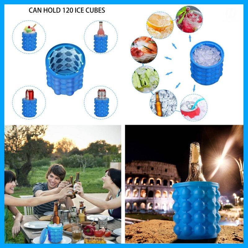 Quickly chill bottled beverages and can drink iced drinks anytime and anywhere. Silicone ice cube maker bucket revolutionary space saving holds up to 120 ice cubes with unique double chamber design Its double chamber design is what makes it special. Outer chambers fridge the ice cubes while inner cylinder stores them Ice Genie cube makers will save a lot of space for your freezers and keep your cubes fresh and odorless, with airtight covers Ice Genie cube makers will save a lot of space for your freezers and keep your cubes fresh and odorless, with airtight coversICE CUBE MAKER / Ice bucket / 2 in 1 Ice bucket / Refrigerator Freeze Mold