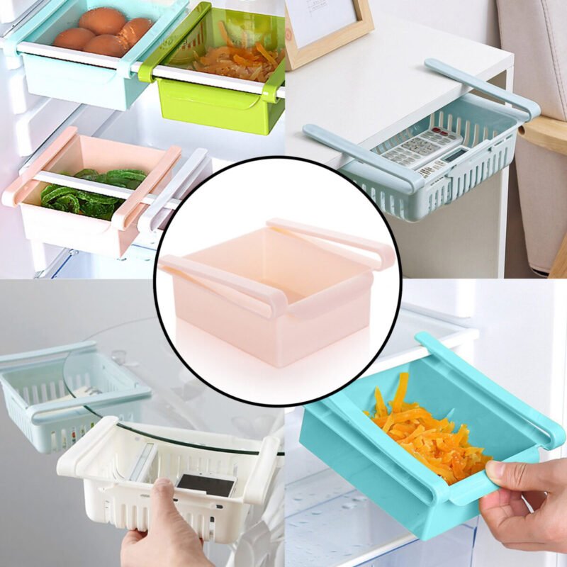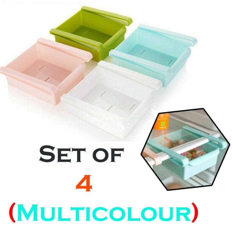 Set of 4 Adjustable Refrigerator Storage Basket, Expandable Fridge Rack, Sliding Vegetable Organizer Tray Box, Freeze Space Saver Drawer (Multi Color)