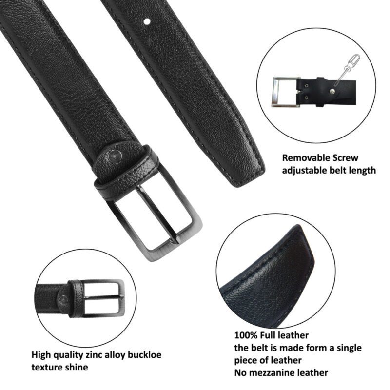 A leather belt is a long, structured accessory designed to support pants, skirts, or other garments to keep them up on the body. Belts are one of the oldest accessories in history, with fragments of buckles found tracing back to the Bronze Age